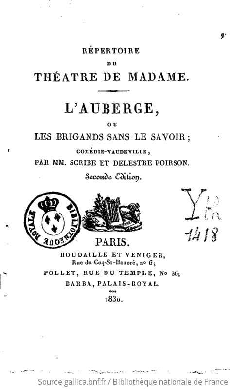 Une pièce de théâtre populaire de 1830 écrite par le dramaturge Eugène Scribe s'intitule L'Auberge ou les brigands sans le savoir. (lien pour lire en ligne)
